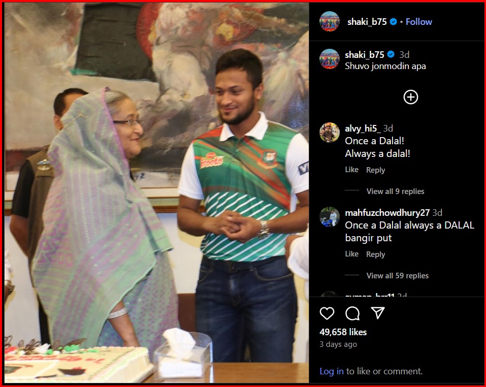 He said this after the cricketer put up a social media post, wishing Awami League President and five-time Prime Minister Sheikh Hasina on her birthday.