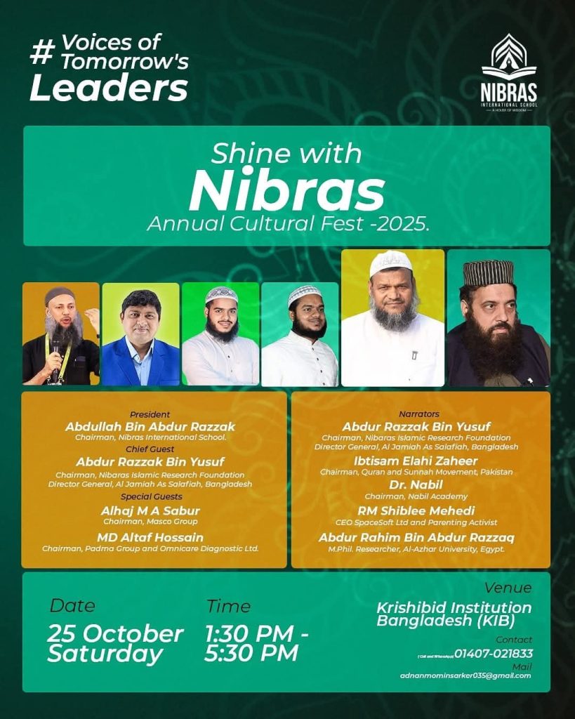 After reaching Dhaka, Zaheer addressed the โShine with Nibras – Annual Cultural Fest 2025โ at Krishibid Institution Bangladesh (KIB).