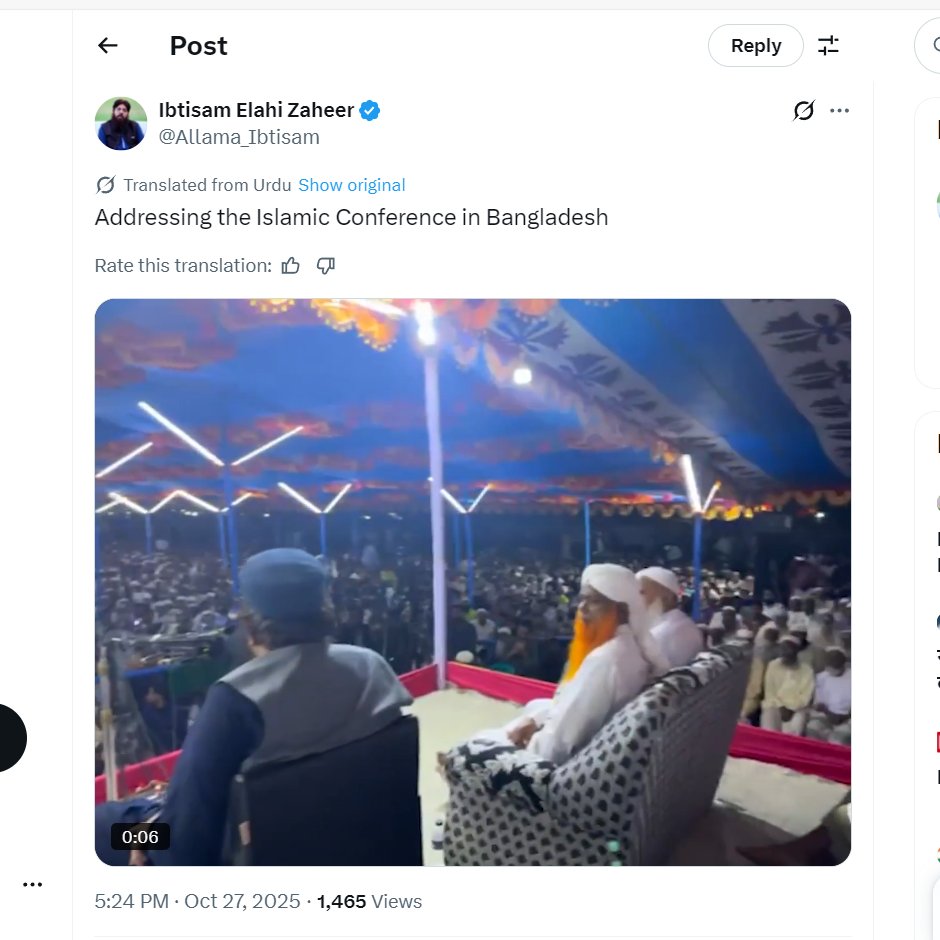 Zaheer is the General Secretary of Pakistan’s Markazi Jamiat Ahl-e-Hadith and a long-time ally of the UN-designated terrorist. He landed in Dhaka on October 25 and has since toured sensitive border districts, delivering inflammatory speeches and networking with local radical elements.