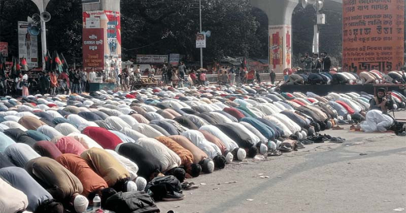Thousands gathered for an “anti-hegemony” protest, ostensibly mourning Hadi but devolving into a venomous anti-India tirade laced with religious extremism. Organised by groups like DUCSU, Islami Chhatra Shibir (Jamaat-e-Islami’s student arm), and Islami Chhatra Andolan, the event saw protesters rename the intersection “Shahid Osman Hadi Chattar” and pledge unrelenting “struggle” until justice for Hadi.