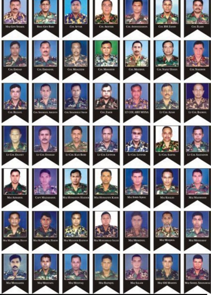 The Pilkhana tragedy, also known as the BDR mutiny or Pilkhana massacre, unfolded on February 25โ26, 2009, at the BDR’s Pilkhana headquarters in Dhaka. Mutineers killed 57 army officers (including then-BDR Director General Major General Shakil Ahmed) and 17 civilians while holding hostages amid demands and grievances. Several top leaders of the BNP-Jamaat and militant groups Hizb ut-Tahrir, JMB and HuJI-B were involved in the massacre as masterminds.