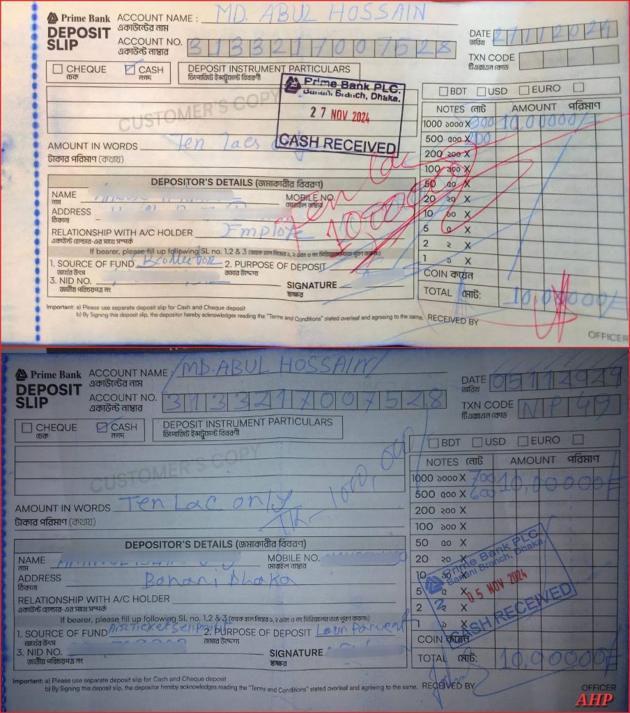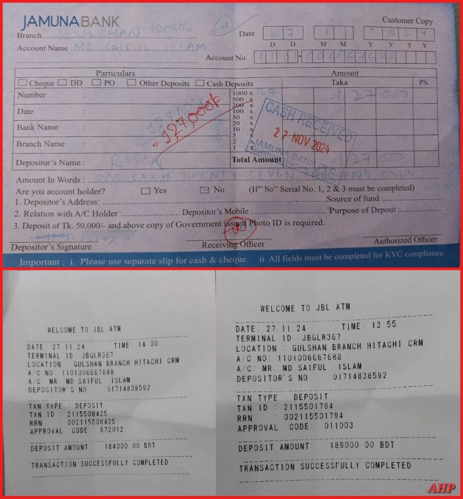 In one verified instance, Tajul’s group extracted Tk25 lakh from an individual by promising to drop their name from an ICT case. Deposit receipts exist for this transaction. This is merely a small sample. A thorough state investigation could easily trace ownership, inflows, outflows, and beneficiaries of these accountsโproviding irrefutable evidence of the corruption.