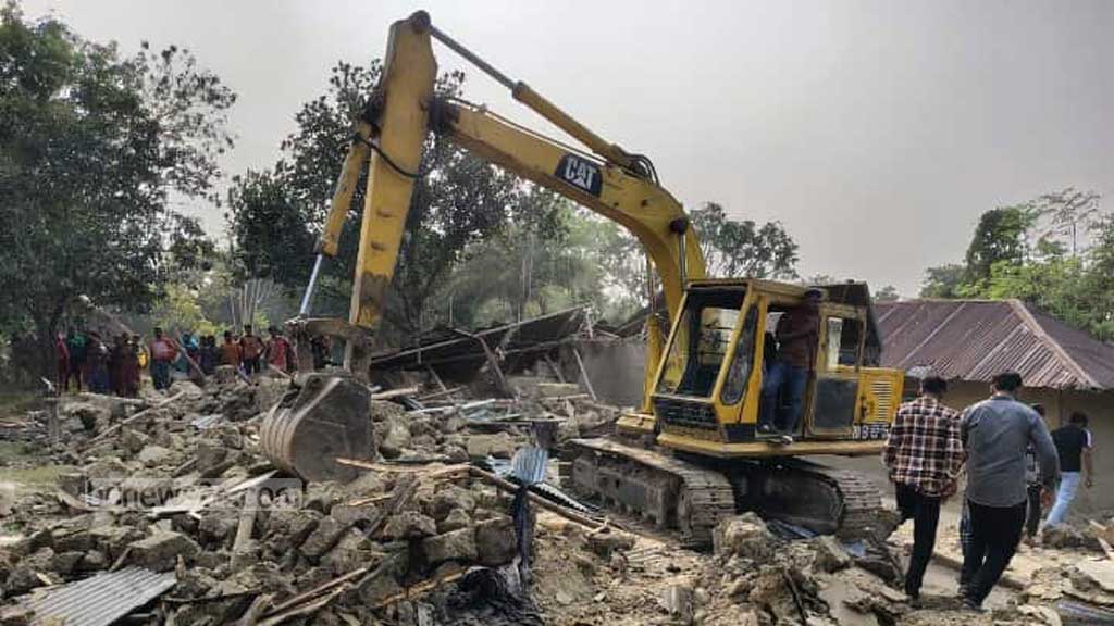 In Godagari, Rajshahi, the roofs of five families of the minority Kol community have been torn off. Their houses have been demolished by excavators. Now they are spending their days sheltering in bamboo groves.